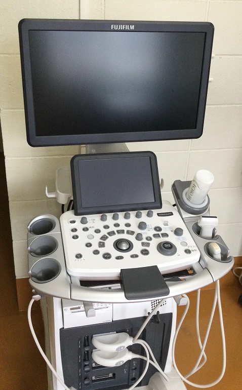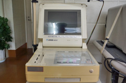 超音波の反響をつかって、体の内部の断面を調べる機械です。