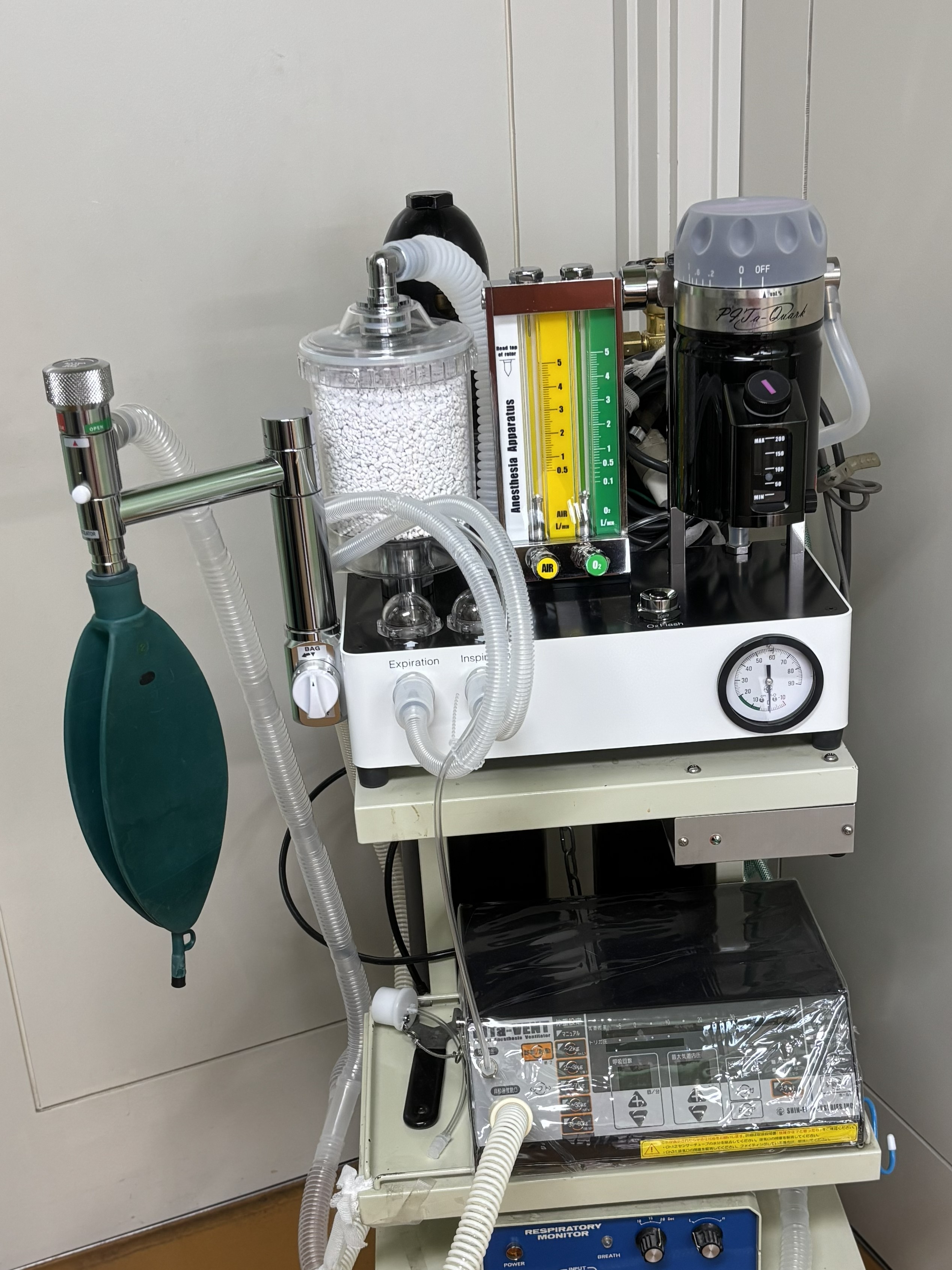 必要に応じて麻酔器に接続された人工呼吸器により、調節呼吸下で手術を行ったり、人工蘇生術を行います。