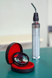 眼底を観察することが出来る特殊なレンズです。散瞳させた状態で使用し、眼底の血管や網膜の状態、タペタムの状態などを検査することができます。
