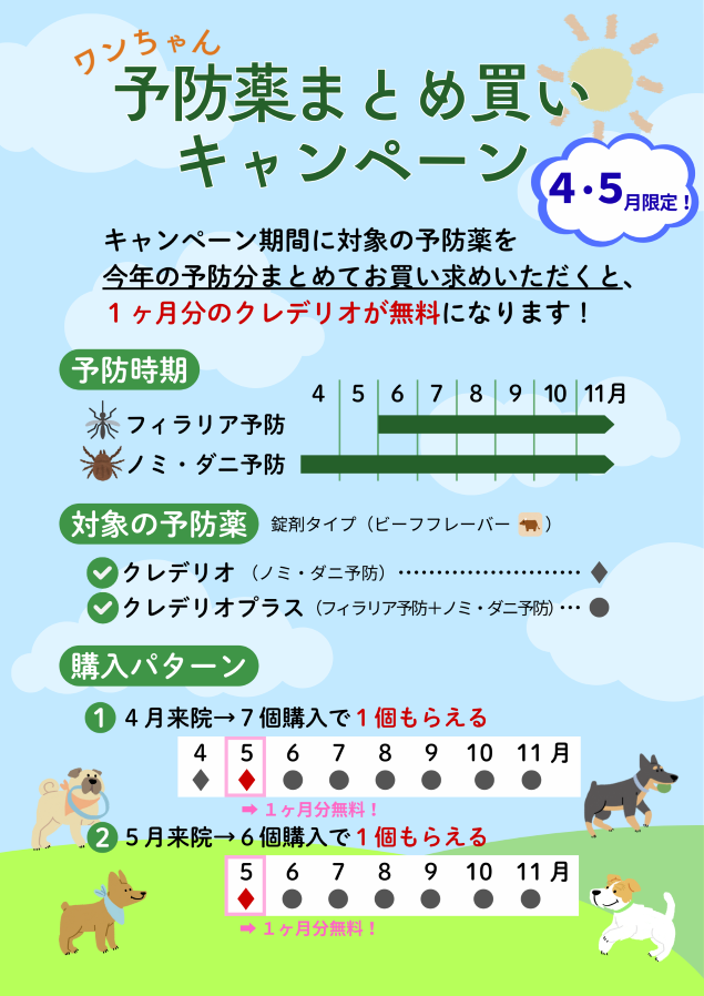 ワンちゃんを対象とした、『予防薬のまとめ買いキャンペーン』を開催します。