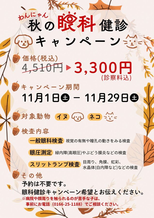 2025年11月1日(土)~11月29日(土)の間、秋の眼科キャンペーンを開催します。